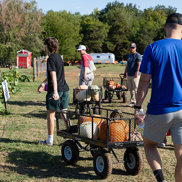 We will mark your pumpkins and transport them to the parking area for you. Just stop by the pumpkin pick up booth in the parking lot and show your reciept.